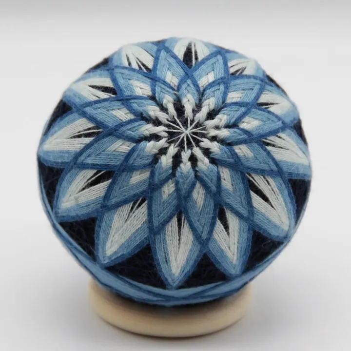 地元の藍染の紺屋さんで染めて頂いた、藍染糸を使い製作した幾何学模様の美しいてまり。 代表的な菊刺し模様です。 ※こちらの商品は1つ1つ手作業で制作している為、色や形に若干の違いが出る場合がございます。 ※ご購入される個数によっては納品までお時間をいただく場合がございます。 ご希望やご不明な点等ございましたらお気軽にお問い合わせください。