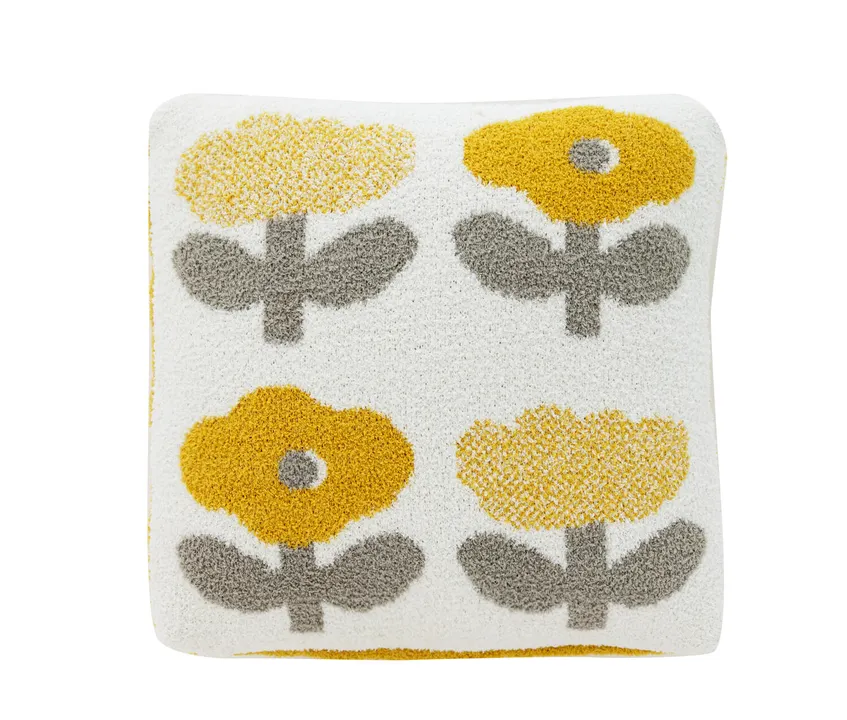 フラワーモチーフでお部屋にイロドリを。 人気の北欧テイスト+お部屋がパッと明るくなるようなカラーリングで、オールシーズンお使いいただけるインテリアアイテムを作りました。 ブランケットと同じフェザーニット素材のクッションカバー。 45×45cmのヌードクッションにちょうどよいサイズ。 ファスナータイプです。 ソファやベッドに並べてインテリアのアクセントにいかがでしょうか。 【注】中身のクッションは付属しません。