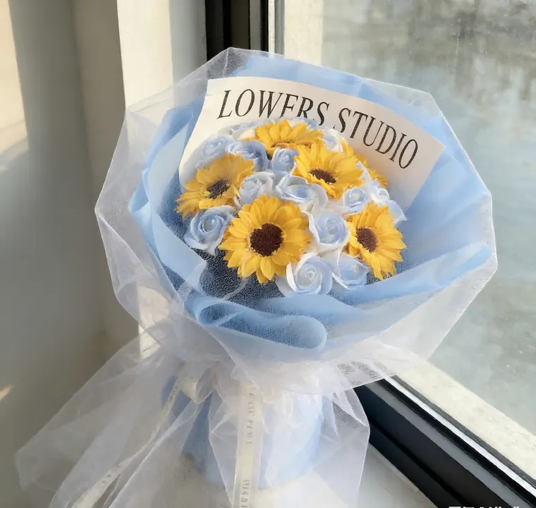 豪華卒業式母の日即納飾り枯れないお花 ソープフラワーひまわり 花束 ギフト 人気 誕生日プレゼント お花 ギフト 父の日 敬老の日 成人式 バレンタインデー クリスマス ブルー