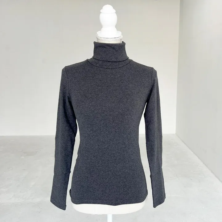【日本製】丸胴コットンフライス_タートルネック長袖 ダークグレー 1-2サイズ