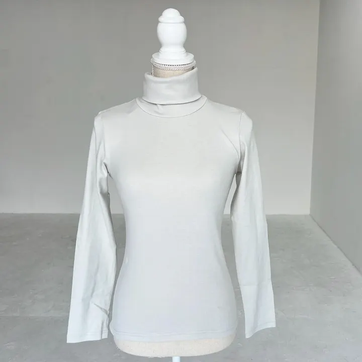 【日本製】丸胴コットンフライス_タートルネック長袖 トープ 1-2サイズ