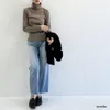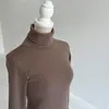 【日本製】丸胴コットンフライス_タートルネック長袖 モカ 1-2サイズ