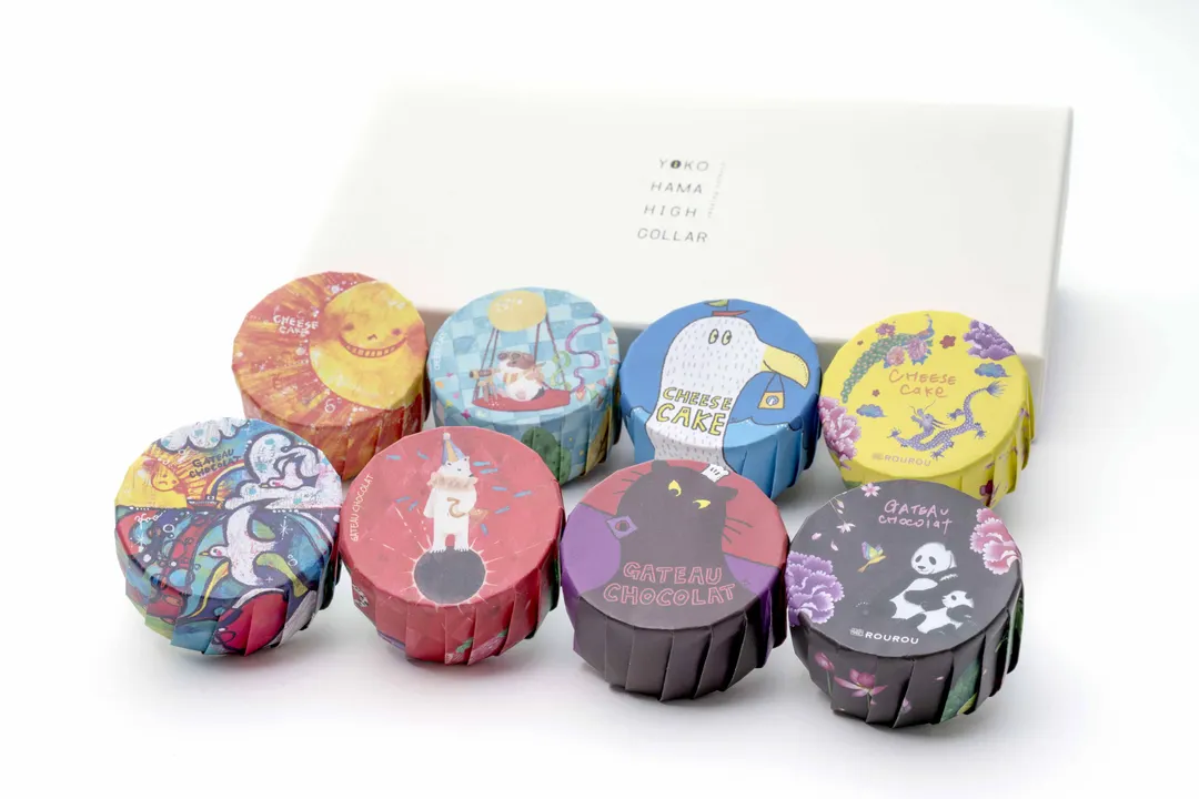 缶詰タイプのケーキ「横浜ハイカラ」 くるりとかわいいパッケージに包まれた缶詰のチーズケーキとガトーショコラのシリーズ。 4人のアーティストのパッケージを1種類ずつ詰め合わせています。 パティシエ監修のもと、缶の中で生地を膨らませるという日本で唯一の製造技術(特許代6338317号)により、いつでもどこでも美味しさそのまま、ふっくらとなめらかな食感が楽しめます。 保存料は一切使わず、常温で製造より2年間保存可能。「おいしい防災食」としても。 チーズケーキは、厳選したクリームチーズを惜しみなく使い、しっとりなめらかな口当たり。 ガトーショコラは、洋酒がほのかに香る、濃厚で食べ応えのある大人の味。 トッピングを加えれば、おもてなしやパーティーに重宝する華やかなスイーツが完成。 ひと手間加えることで一層美味しく、写真映えにも。 またアウトドア時のお土産としても活躍。 チーズケーキ・ガトーショコラそれぞれのパッケージデザインを4名の人気クリエイターが横浜・神奈川をイメージしてイラストレーションしました。 パッケージを広げるとまるで物語が始まるかのようなわくわく感が楽しめるのがクリエイターズパッケージの特徴です。 それぞれが思い描く横浜が、そして購入したお客様へのメッセージが缶スイーツに込められています。 かおかおパンダ 北海道出身。鎌倉市在住。2001年に初個展。海や自然を感じるような、そして元気が出るような、アーティストの基本コンセプトに合っている自然体で描いた作品。心にhappyを届けたsweets。絵や色で更にhappyな気持ちが増えたらいいと願いを込めて制作。 リタ・ジェイ 新進気鋭のイラストレーター。「ポップ&ドライ」をテーマに雑誌やウェブなどにイラストレーションを発表。抜けの良い港が真っ先に浮かび、そんな港から見える海に漂うカモメと、チョコレートはそんな横浜の赤レンガの室内で猫のパティシエがガトーショコラを作っているイメージで描いた作品。 村本ちひろ 大阪府出身。東京都在住。PalletClubSchool15&16期生・山田博之イラストレーション講座14期生、同志社女子大学卒。チーズケーキを太陽の様に輝く気球に見立てサーフボードに乗ったモルモットがワクワクしながら神奈川を旅するところを描く。ガトーショコラは皆既月食に見立て、しろくまがトランペットを吹いたらヤマボウシやブラシノキが咲く幻想的なイメージに制作。 早園マキ 横浜市生まれ、横浜市在住。日本ファッション学院卒業後、職人として家業を手伝いながら、モデルとしてコレクションや雑誌、TVCFなどで活躍。誰も知らない、アジアのどこかにある争いのない国「朧朧国」(ロウロウ国)。そんな理想郷をイメージし、朧朧国の世界と、甘くて優しいスイーツで、心に平穏が訪れますようにという願いが込められた作品。 【横浜ハイカラ】 2018年春に発売を開始し、パッケージは、「日本伝統の折り紙の技法で、ケーキという西洋の文化を包み込む」をコンセプトに。近代幕開けの舞台となった「横浜」は、日本の伝統文化と西洋文化の窓口という2つの顔を持っています。「ハイカラ」とは開港当時、西洋風の身なりや生活を好む人を評する言葉でした。和と洋が絶妙に調和する横浜らしいお菓子ということで「横浜ハイカラ」と名付けました。