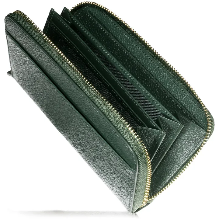 財布 メンズ 長財布 本革 カード14枚 縦入れ収納 スキミング防止 大容量 薄型 コンパクト サイフ ベジタブルタンニン鞣し シュリンク レザー/Nova ノヴァ SW6 ディープグリーン