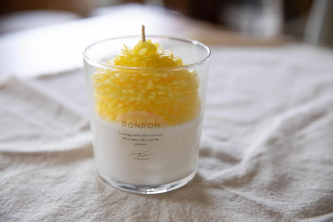 1枚1枚、ロウを伸ばし、 手作業で丁寧に花びらを重ねて作る、ぽんぽん菊。 丸く愛らしいシルエットと、小さな花が集まって咲く精巧な様子から、 「高貴」「真実」という花言葉がつけられました 他にも、「君を愛す」「私を信じて」という花言葉から、 結婚式の場にもよく用いられてる、 縁起のいいお花です 土台には大豆を原料とした天然ワックスである、 SOYキャンドルにはちみつの香りをつけています (無香料もお選びいただけます) ////////////////////////////////////////////////// お好みのお花の色をお選びいただけます ・黄色 ・ピンク ・白 『ひいらぎキャンドルの〈flower candle〉』 天然のロウ「蜜蝋」を材料に、 花びらから一枚一枚手作業でつくった、お花のキャンドル。 その灯りは繊細で美しく、儚い灯火を見せてくれます。 特別な方への贈り物としても人気。 優雅で可憐なお花のキャンドルをどうぞ。 【香り】無香料 または はちみつ 【燃焼時間】約30H(気温・空調・環境により異なる) ・・・・・・・・・・・・・・・・・・・・・・・・・・ ひいらぎキャンドルでは、 キャンドルは一点一点全て手作業で作成しています。 キャンドル本体の製作だけでなく、ラベルやパッケージのデザイン、シールの貼り付け、 梱包など、キャンドルが生まれるところから旅立つまでの間の全ての制作作業を 自身で行なっております。 【ご注意点】 <こちらの商品は受注生産になります> ・香りの良い新鮮なものをお届けする為、注文を頂いてからお作りしています ・1つ1つ丁寧に作成しておりますがハンドメイドの為に画像と同じ作品は作れません 手作業のため大きさに多少の誤差・お色味や形状が若干異なる場合がございます ・お客様よりご注文を頂いてから、すぐに製作に入らせて頂きます 途中でのデザインや素材など一切の変更、製作のキャンセルはお受けすることが出来ません ・注文日より1週間以内に発送しておりますが、 お急ぎの方・ご希望納期のある方は必ず事前にお知らせ下さい。 配送地域、交通事情、素材の在庫等の理由により遅延する場合がございます お届けまでに2週間ほどかかる場合もございます どうぞ余裕を持ってご購入くださいませ ○火を取り扱う製品となります。 「attention」という注意事項を同封致しますので、 必ずお読みいただきご使用下さいますよう宜しくお願いいたします。 ※当店のキャンドルをご使用の上で起きた事故についての責任は負いかねます※ 予めご了承ください