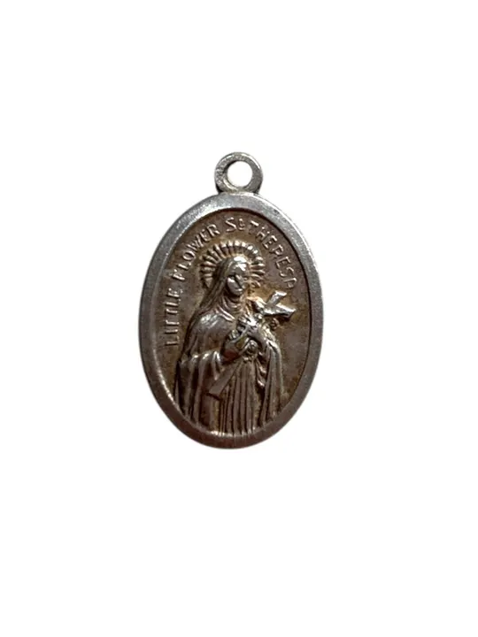 ロサンゼルスで買い付けた1点もののヴィンテージメダイ St.THERESA / ITALYの刻印あり Theresa(テレサ)は、ギリシャ語の「収穫」や「見守る」に由来する、主に英語圏やキリスト教圏で使われる女性の氏名・人名です。マザー・テレサ(Mother Teresa)として知られる修道女や、スペインの聖人聖テレサが有名です。 ※ネックレスチェーンは別のページにて販売しております  同時購入頂いた場合はネックレスにした状態で発送が可能です  ご希望の場合はメッセージください