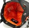 本体生地にミリタリーテイストのリップストップナイロンを使用し、裏地には鮮やかなオレンジ生地でデザイン性と視認性を両立。 リフレクトが織り込まれたロープは車のライトを反射し夜の外出でも安全です。 サイドにもジッパーポケットが装着され小物の収納に便利。