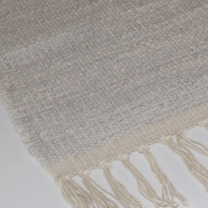 綿100%の上質な手織りして作られたラグ。万一汚れてしまっても手洗い可能です。 キッチンやダイニング、ベッド脇や大きな玄関など様々な場所に馴染むデザインとサイズです。 柄物ながら落ち着いた色合いで、お部屋のアクセントに。 サイドのフリンジがアクセント。 北欧モダンなインテリアやナチュラルインテリアにぴったりです。 こちらのサイズは二人掛けソファの足もとに丁度良いです。