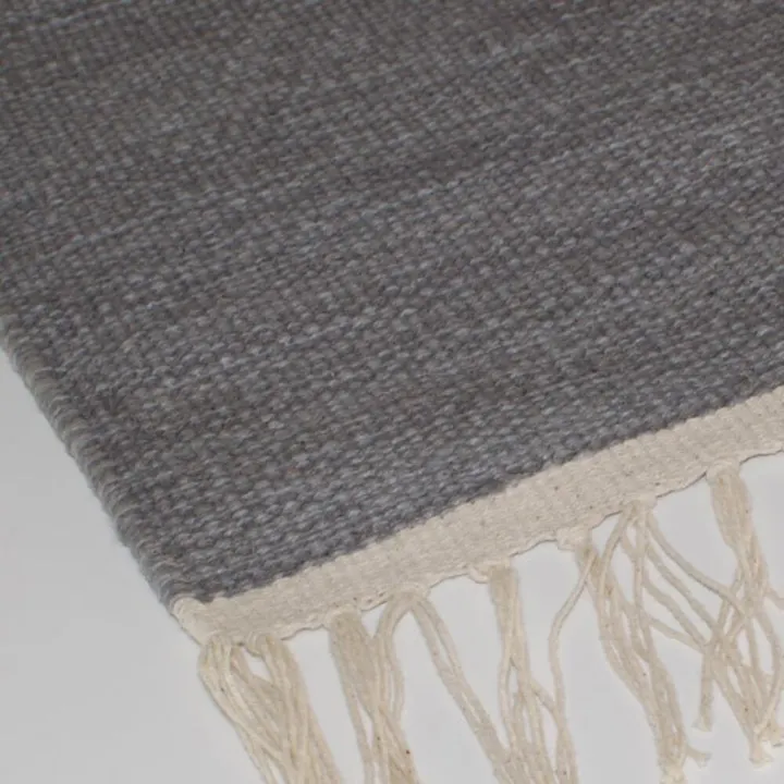 綿100%の上質な手織りして作られたラグ。万一汚れてしまっても手洗い可能です。 キッチンやダイニング、ベッド脇や大きな玄関など様々な場所に馴染むデザインとサイズです。 柄物ながら落ち着いた色合いで、お部屋のアクセントに。 サイドのフリンジがアクセント。 北欧モダンなインテリアやナチュラルインテリアにぴったりです。 こちらのサイズは二人掛けソファの足もとに丁度良いです。