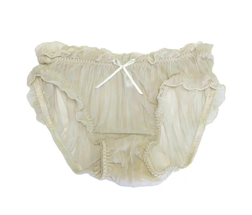 薄くて柔らかい伸縮性のある生地にプリーツ加工をし、軽やかでプリティー、ロマンティック、アンティークな 雰囲気に仕上がりました。 特殊な生地なので裁断、縫製が難しく縫える工場がなかなか見つかりませんでした。 良く伸びるので幅広いサイズの方にお使い頂いております。 サイズM(ヒップ87-95) お揃いのノンワイヤーブラがございます。