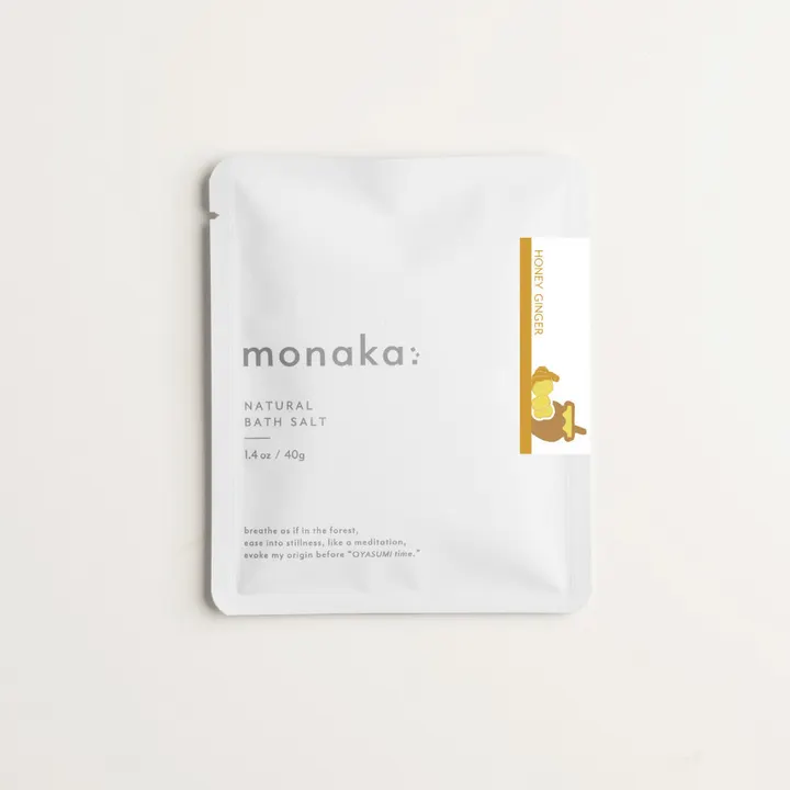 monaka ナチュラルバスソルト はちみつジンジャー 40g(1回分) / 320g(8回分) 【森の中を歩くような心地よい入浴を】 目指したのは「極上のバスソルト」 花や果実、草木など、自然そのままの香りや色合いを大切に仕上げました。 まるで素材を味わうかのように浸る、優しい入浴時間。 【はちみつジンジャー】 国産はちみつ × ジンジャー精油 -ポカポカ湯けむり、優しく甘いはちみつ生姜- ハチミツの優しさと生姜の力強さに包まれる香り。 お風呂でポカポカ温活気分♪ 【LINE UP】 〇プレミアムヒノキ 〇プレミアムはちみつレモン 〇はちみつジンジャー 〇ゆずシトラス 〇プレミアムみかん 〇プレミアムラベンダー 〇プレミアムローズ 〇クレイ月桃 〇キャラメルシナモン 〇キャラメルバニラ 【ミネラル豊富で環境にも優しい天然塩】 西オーストラリアの塩田で製造される「シャークベイソルト」を使用。 太陽と風の力で2~3年かけて結晶化させる「天日塩製法」で作られた塩は、環境にも優しいだけでなく、 カルシウム・マグネシウムなどのミネラル成分が豊富に含まれる。 【ヒアルロン酸Na配合】 1gで約6Lもの保水力を誇る、保湿美容成分を配合。 【使用法】 140~160Lのお湯に対して40g程度を目安に入浴前に入れてご使用ください。 【お知らせ】 ●追い焚きしないでください。 ●色や香りが残らないよう、入浴後はすぐに洗い流してください。 ●商品の特性上、LOTや時間で色や香りが変わることがあります。 ●本品は雑貨です。 【販促物】 ◇ブランドカード(A5サイズ) ◇各種香り説明カード(名刺サイズ/縦) ◇共通プライスカード(名刺サイズ/横) ご入用の方は、備考欄にてお申し付けください。 関連ブランド・・・ ◇tamamono organic = 植物の力で心と体を整える / オーガニックコスメ、アロマ ◇WAKAPLUS = 和の香りを日常にプラスする / バスソルト ◇manaplus PRO = 美容サロンなどで使用するプロユースコスメ / キャリアオイル、アロマ ◇KOTOLABO = 京都発のフレグランスブランド / 練り香水、お清めミスト ◇monaka = 素材を味わう10種のバスソルト / ヒノキ、はちみつレモン、ラベンダー など