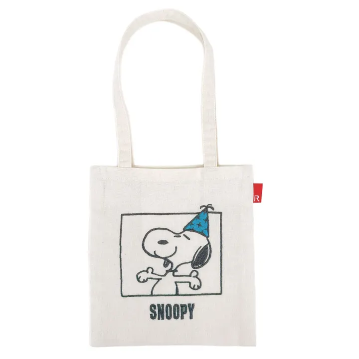 75周年を記念するアートをプリント。 愛らしいスヌーピーと仲間たちのデザインが、気分を高めてくれます。 しなやかな素材は、薄手でありながらしっかりと目が詰まったリサイクルコットン。 もって楽しい、気づけばエコ!を体現できるシリーズです。 可愛いサイズのミニトート「べビール—」。 腕掛けしやすい長めの持ち手もポイント。 お財布、スマホやハンカチ… 必要最低限のものを入れて、ちょっとしたお出かけに大活躍! フラットな形状なので、バッグの中に入れておいてもかさばりにくい。 バッグインバッグやポーチのようにも使えそう。 小さいながらも、背面には2口のルーポケット。 仕分けもできて、サッと取り出したいものを入れておける便利なポケットです。