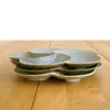 落ち着いたアースカラーの3色でどちらもテーブルやほかのうつわとの馴染みが良いです。 しっかりとした仕切りがあり、オードブルやおつまみ、スイーツなど多岐にお使いいただけます。 こちらは磁器製で、重厚感あるしっかりとした作りです。 ぴったり重なるわけではありませんが、うつわの収まりは良い方です。 カラーは3色、アンティークホワイト・アッシュブルー・スレートブラックよりお選びいただけます。 カラーにより表面の質感が違い個性をだしています。 同シリーズでラウンドプレート・ケーキスタンド・オーバルボウルのご用意もございます。 アンティークホワイト(表面ざらつきあり) アッシュブルー(表面ざらつきあり) スレートブラック(いぶし調なめらか)