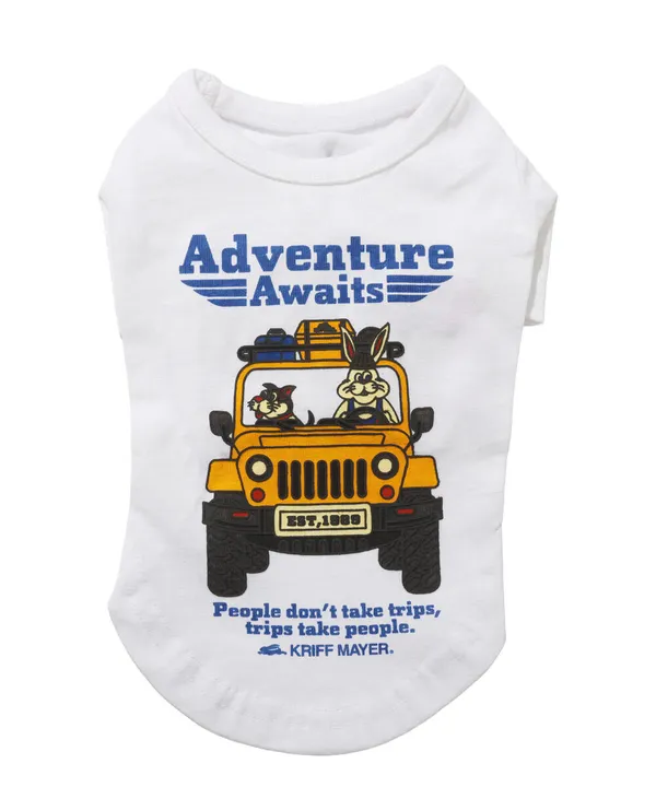 クリフメイヤーブランドキャラクターのクリフラビットシリーズ。 愛犬とのドライブシーンをイメージしたグラフィック! アウトラインはぷくっとした発泡プリントを使用し ポップで立体感のある見た目が柄と相まって可愛く目を惹く一枚です。 胸にもプリントを入れているので、お座りして前から見た時にも映えるようにしています! 他にないドッグウェアで他のわんちゃんと差別化しちゃおう!