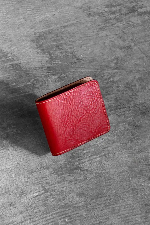 カード、紙幣のみのタイプの二つ折り財布です。 カジュアル過ぎず、オンオフ問わずにマルチユースできる大人のための一品。 シンプルなデザインにより革のナチュラルな風合い、上質な素材感を引き出しました。 内装にはグレイジングレザーを使用。芯材を用いず、一枚革でソフトに仕上げました。 色合いは生成りなので、内側が明るく内側が見やすいのもメリット。 紙幣にはオイルがつきにくく、綺麗にお使いいただけます。 Material:表革 Shrink leather / 裏革 Glazing leather Size:H98 × W115 × D15mm ※天然皮革を使用しているため、記載の数値と多少の誤差が生じることがあります。 【注意事項】 ・商品のお色はPC環境によって多少色合い、見え方など違ってまいりますのでご了承ください。 ・部位によっては牛が元々持っていたしわや小さな傷がありますが、自然の風合いとしてお楽しみください。 ・職人が一つ一つ手作業で製作していますので革の表情は少々異なる場合があります。