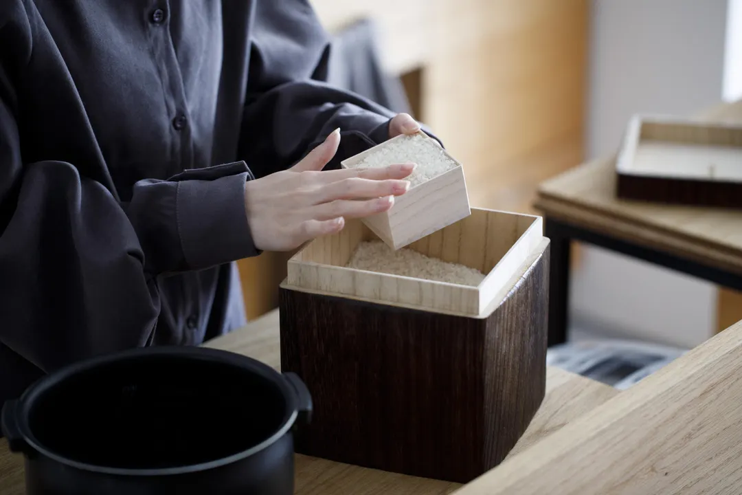 総国産桐の米びつ。 1合マスが一つついてきます。 桐の性質の調湿効果と職人が手作業にて気密性高く仕上げているので庫内の湿度は平均50%に保たれます。 桐自体に防虫効果もあるので虫も寄せ付けません。 通年美味しい状態でお米を保存することが出来ます。 また、お米だけではなくパンやお菓子、乾物類等の保存にも最適です。