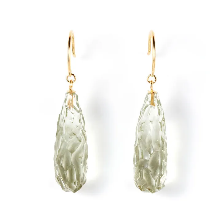 【Sculpture】K18YG グリーンクォーツ ピアス