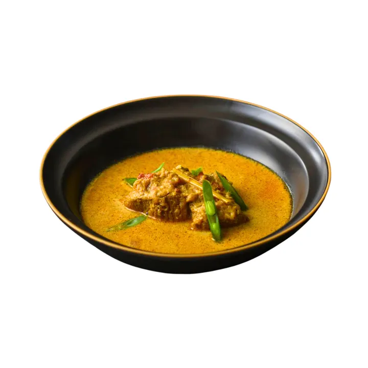 ●国産豚の肩ロースをごろっと130グラム、贅沢に使っています。余分な脂を落としてからブレンドスパイスやレモングラス・ビネガーで煮込み、柔らかなポークと、あっさり・さっぱりな後味で、長く心地よい余韻を楽しめるカレーです。