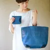 「もったいないを、もっとゆたかに」をコンセプトに。 サスティナブル(持続可能)なものづくりを目指す取り組みの一環として、 蚊帳の日常着を作る過程でどうしても出てしまうあまり布を、 糸状にカットし、時間をかけて一段一段丁寧に織りあげました。 ステッチのようなテキスタイルがおもしろく、 手仕事ならではのあたたかみがあります。 本革のアップリケがおしゃれなトートバッグは、デイリーユースにぴったりです。 岩手県で「裂き織」を手掛けている 『幸呼来(さっこら) Japan』さんとコラボレーション。 寒冷な気候のため古くから布が貴重とされてきた東北地方では、 日常生活で使う衣類や布団をくたびれても捨てず、細く裂いて繊維状にし、 再び織り上げ活用してきました。 「使い切る」という文化の中で発展し、 受け継がれてきた独自の技術が「裂き織」です。 持ち手部分は麻の帆布で出来ており、使い込むほどに馴染んでいきます。 16cmのマチをとり、書類やタブレット、小型のノートパソコンもらくらく入る サイズ感なので、お仕事用としても活躍しそう。 [サイズ/組成] 32cm×32cm×16cm 素材 本体・裏地 綿 100% 持ち手・見返し 麻100% アップリケ牛革(墨・藍・つるばみ)山羊革(香色)  マグネット付き 内側ポケットあり