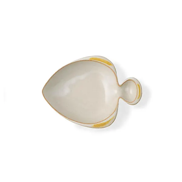 オリーブオイルやお醤油の受け皿として、ナッツやチョコレートなどの小皿として幅広く使用できる魚型の小皿。 尾の部分と本体の部分で仕切り皿としても使用できます。 抽象的にデザインされた魚の形と、ヒレや尾の部分に一つ一つハンドペインティングで彩色されたカラーがポイントです。 裏面にはデザイナーサインが丁寧に掘り込まれています。 Fajans(ファイアンス) Fajansシリーズは、ヨーロッパで発祥した「ファイアンス焼き」から影響を受け作られたシリーズです。 スウェーデンでも多くのデザイナーが魅了され製作した事でも有名な「ファイアンス焼」は、 繊細な淡黄色の土の上に錫釉をかけた陶磁器を指します。 本来は1100℃程の低火力で焼かれていることから、脆く普段使いには適さない食器です。 ポトペリーのFajansシリーズは10年かけて土と釉薬の研究を重ねて製作し、1250℃の高温焼成をすることで 器の耐久性を向上させ、「ファイアンス焼」の柔らかで温かみのある質感を持ちながら 現代生活に欠かせない電子レンジや食器洗浄乾燥機を使用できる素材に仕上げました。