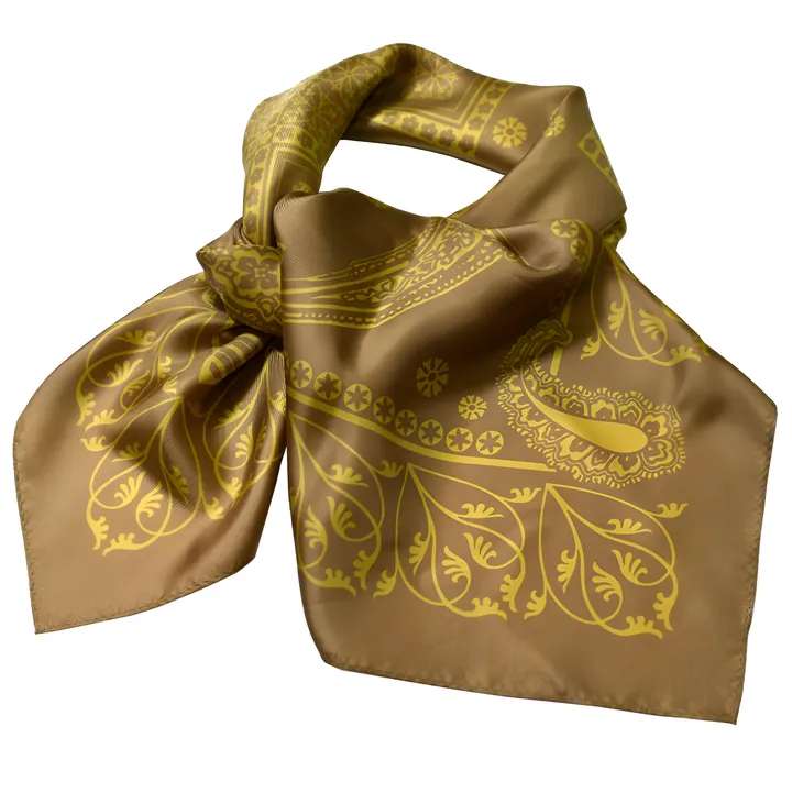 シルクエスニックペーズリー小紋柄スカーフ ベージュ