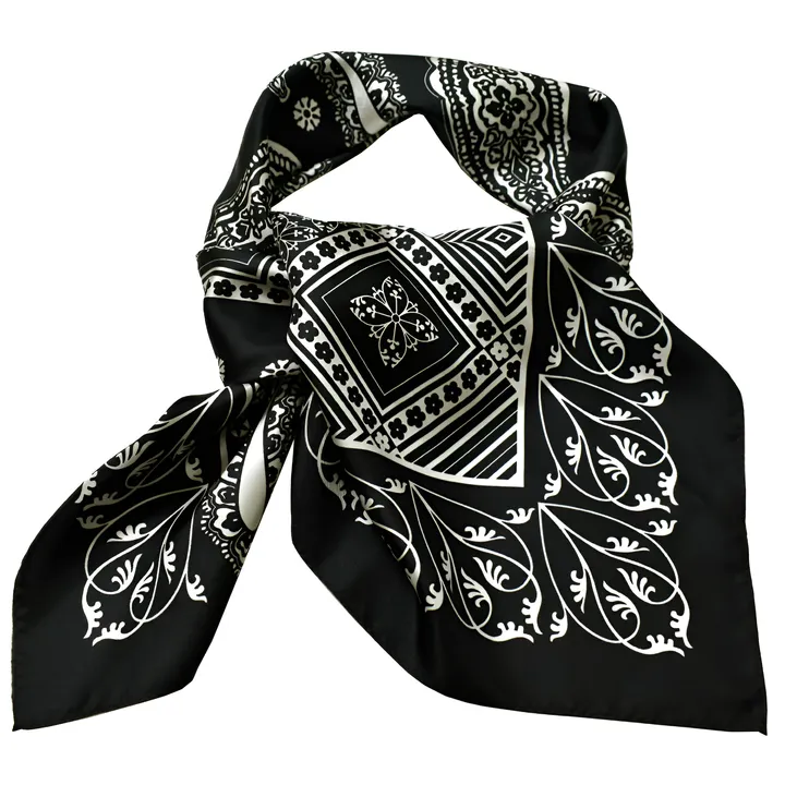シルクエスニックペーズリー小紋柄スカーフ クロ
