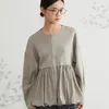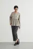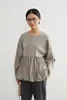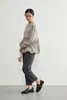 ◆生地 伸縮性のあるダンボール素材と、軽やかな布帛をドッキング。異素材のコントラストで、立体的なシルエットを美しく表現しました。肌触りも柔らかく、着心地の良さも魅力です。 ◆デザイン 裾に丸みを持たせたバルーンヘムが特徴のブルゾン。ギャザーの入った立体的なシルエットが、甘すぎず大人っぽい印象を与えてくれます。ドロップショルダーとゆったりした袖が、リラクシーでありながら女性らしい雰囲気を演出。フロントはジップ仕様でモード感をプラスしました。 ◆コーディネート シンプルなボトムスに合わせるだけで、主役級のスタイリングに。テーパードパンツできれいめに、ワイドパンツやデニムでカジュアルに、スカートでフェミニンにも着こなせます。オン・オフどちらでも活躍する万能アウターです。 単位(cm)モデル身長167cm サイズ FREE  着丈 64/67 バスト 96 裄丈 74 素材:レーヨン50%、ポリエステル45%、ポリウレタン5% 別布:ポリエステル73% ナイロン27% 中国製 透け感:なし 生地の厚さ:普通 光沢感:なし 裏地:なし 家庭洗濯:可能 ◆商品ストーリー 「シンプルだけど、どこか特別感がある服を作りたい」 そんな想いから、このバルーンヘムブルゾンは生まれました。 裾のふんわり感を出すためには、布帛の分量とギャザーの入れ方が重要。しかし最初の試作では広がりすぎてしまい、理想のシルエットにならず…。何度も分量を調整し、軽やかさと丸みを両立させるパターンを探り続けました。 また、異素材の切替えも大きなチャレンジ。ハリ感のあるダンボール素材と柔らかな布帛の相性を見極めるのに時間がかかりましたが、最終的に「動いたときに美しく映える」組み合わせにたどり着きました。 完成した一枚は、羽織るだけで女性らしい立体感を纏えるアウター。甘さとモード感を絶妙にミックスし、毎日のスタイリングを少しだけアップデートしてくれる存在です。