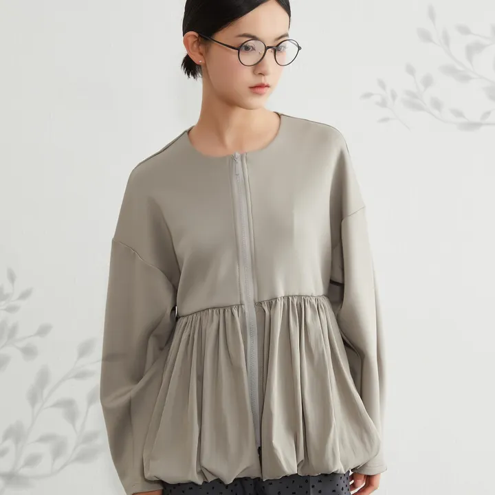 異素材切替 バルーンヘムジップブルゾン 立体スリーブ レディースアウター GRAY/FREE