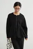 ◆生地 伸縮性のあるダンボール素材と、軽やかな布帛をドッキング。異素材のコントラストで、立体的なシルエットを美しく表現しました。肌触りも柔らかく、着心地の良さも魅力です。 ◆デザイン 裾に丸みを持たせたバルーンヘムが特徴のブルゾン。ギャザーの入った立体的なシルエットが、甘すぎず大人っぽい印象を与えてくれます。ドロップショルダーとゆったりした袖が、リラクシーでありながら女性らしい雰囲気を演出。フロントはジップ仕様でモード感をプラスしました。 ◆コーディネート シンプルなボトムスに合わせるだけで、主役級のスタイリングに。テーパードパンツできれいめに、ワイドパンツやデニムでカジュアルに、スカートでフェミニンにも着こなせます。オン・オフどちらでも活躍する万能アウターです。 単位(cm)モデル身長167cm サイズ FREE  着丈 64/67 バスト 96 裄丈 74 素材:レーヨン50%、ポリエステル45%、ポリウレタン5% 別布:ポリエステル73% ナイロン27% 中国製 透け感:なし 生地の厚さ:普通 光沢感:なし 裏地:なし 家庭洗濯:可能 ◆商品ストーリー 「シンプルだけど、どこか特別感がある服を作りたい」 そんな想いから、このバルーンヘムブルゾンは生まれました。 裾のふんわり感を出すためには、布帛の分量とギャザーの入れ方が重要。しかし最初の試作では広がりすぎてしまい、理想のシルエットにならず…。何度も分量を調整し、軽やかさと丸みを両立させるパターンを探り続けました。 また、異素材の切替えも大きなチャレンジ。ハリ感のあるダンボール素材と柔らかな布帛の相性を見極めるのに時間がかかりましたが、最終的に「動いたときに美しく映える」組み合わせにたどり着きました。 完成した一枚は、羽織るだけで女性らしい立体感を纏えるアウター。甘さとモード感を絶妙にミックスし、毎日のスタイリングを少しだけアップデートしてくれる存在です。