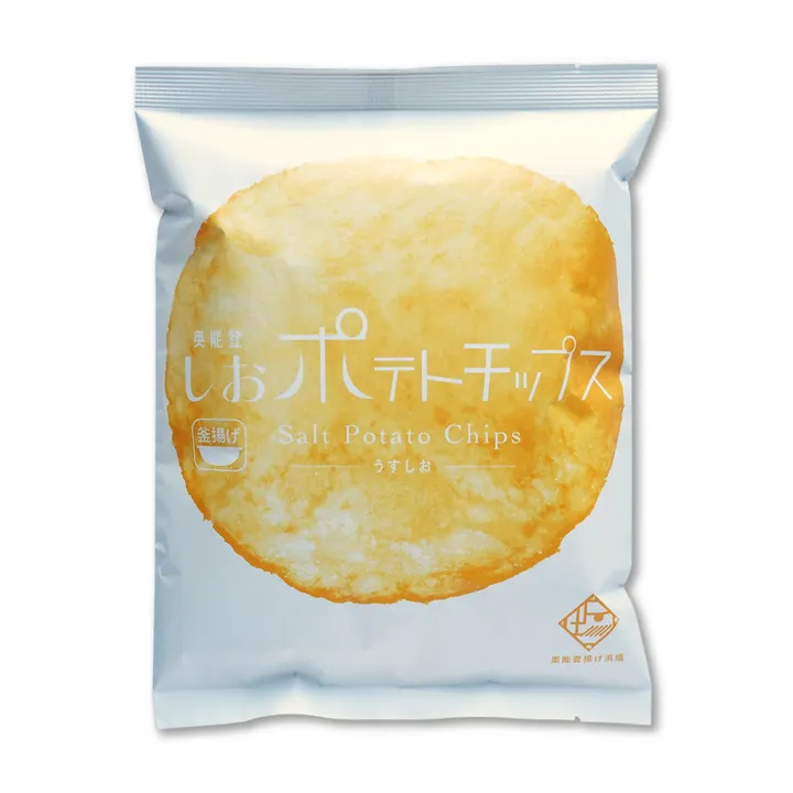化学調味料は一切使用せず、シンプルに塩だけで味付けしています。素材本来の味わいが感じられるポテトチップスです。 〇これぞ、ポテトチップス 国産ジャガイモを少し厚めにカットし、受け継がれてきた伝統の釜揚げ製法で堅めに揚げられています。釜揚げだからこその食感がやみつきになります。