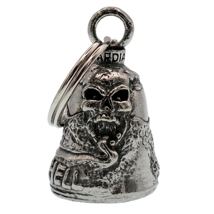 アメリカ製ガーディアンベル社製ガーディアンベルです。 MADE IN USA アメリカ製 交通安全 魔除け 御守り ガーディアンベル アメリカのライダーの間には、事故や、転倒の原因は「道路にひそむ悪魔」によるいたずらだという伝説があります。悪魔は走る者に悪戯やトラブルを運んできます。このベルは美しい音色で悪魔たちを追い払うと言われ愛されています。そんな悪魔のいたずらを防ぎ、御守りとなるのが、守護者のベルという意味を持つガーディアンベル。 日本でも鈴の音(ね)は神道では魔除けの音と言われています。ピューター製の鈴でいい音色でガーディアンベルはデザインも様々あります。 またガーディアンベルにまつわる伝説として、プレゼントとして送られたベルの効果は、自分で手に入れたものの2倍になると言われています。 それゆえに彼氏・彼女・友達・家族へのプレゼントとしての人気も非常に高まっています。 シルバーアクセサリーのようにおしゃれに装着できて素敵な音色を奏でるガーディアンベル。 バイカー以外にも自転車や旅・交通安全のお守りとしてお使いいただけます。 カバン・ランドセル・キーホルダー・ペットの首輪等に付けてお使いください!! ※タイラップ等でバイクのフレームにも簡単に取り付けできます。 アメリカンモデルだけではなく、旧車ファン、レプリカライダーまで、さらにバイクだけでなく、自転車や車にもピッタリな御守りとなっています。 アクセサリーとしても人気で、アイディア次第で車体だけでなく、キーホルダーや鞄など、どこにでも付けておしゃれに楽しめます。