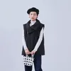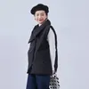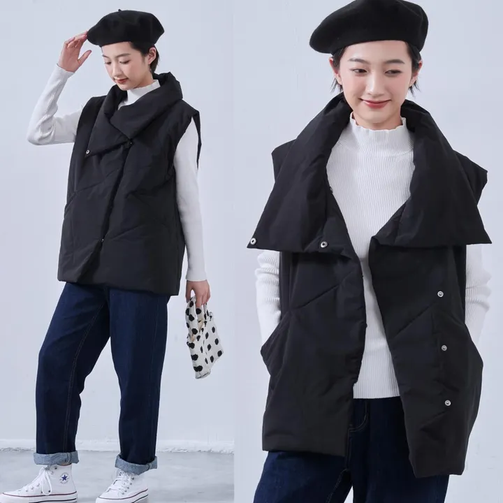 KNNJ359-アシンメトリー・ビッグカラー・中綿ベスト・秋冬アウター・アウトドアベスト BLACK/FREE