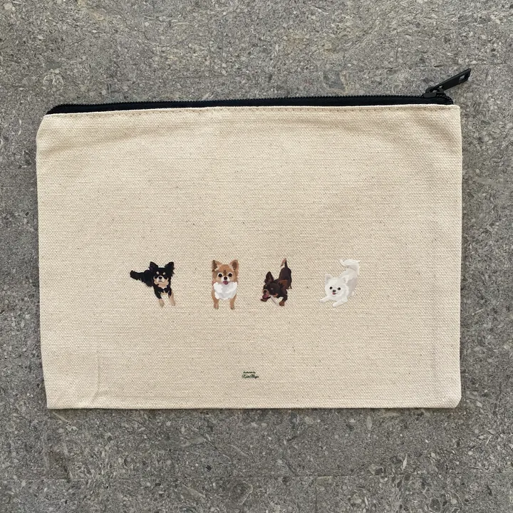 【大きめポーチ】オリジナルイラスト 犬モチーフ ポーチ 便利な大きめサイズ /トイプードル、ゴールデンレトリバー、ペキニーズ、シベリアンハスキー、チワワ チワワ
