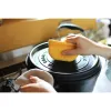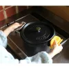 綿100%の蚊帳生地で作った鍋つかみです。 蚊帳生地と真田紐の組み合わせがきれいです。 ≪ 蚊帳生地の特徴 ≫ ・“風は通すが、蚊は通さない”江戸時代から続く日本伝統の布。 ・目の粗い生地で非常に軽く、速乾性・通気性・吸水性に優れています。 [サイズ/組成] 8cm×12cm ※2-3㎝個体差がある場合があります。 本体・真田紐:綿100% 中綿:ポリエステル100% 日本製 ※長時間高温に触れると中綿が溶ける危険性があります。 ※[サイズ/組成]は2-3㎝誤差があります。