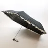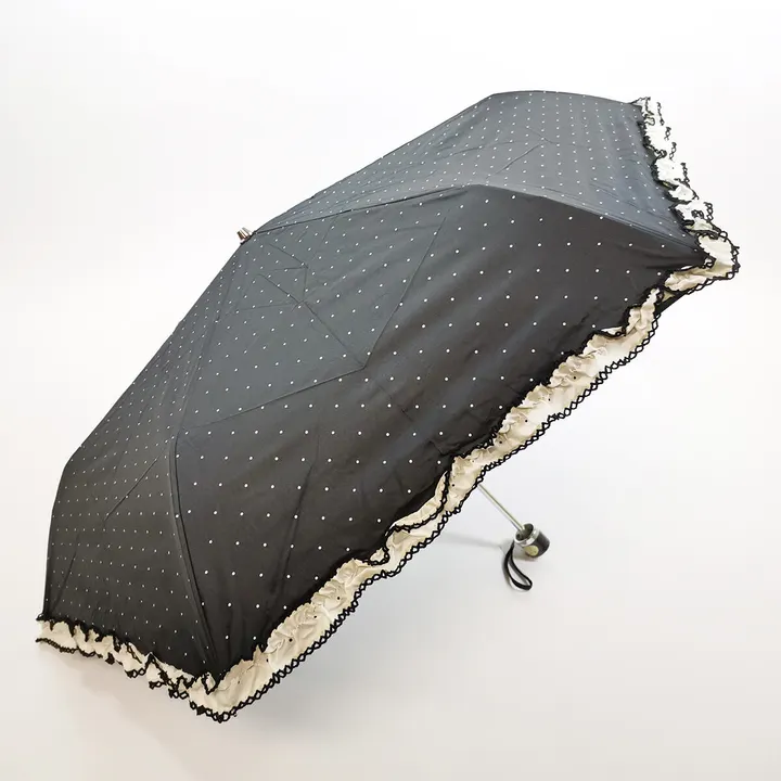UVカット&完全遮光 遮熱 裾レースフリル×ドット 晴雨兼用3段折りたたみ傘 27572 ブラック