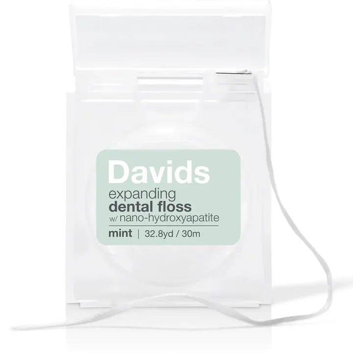 ナノヒドロキシアパタイト配合、レフィル(詰め替え)タイプのデンタルフロス。 デイヴィッズ プレミアム デンタルフロスは、繊維にナノヒドロキシアパタイトを染み込ませ、通常の歯磨きで届きにくい歯の間の再石灰化を助け、虫歯になりにくい歯に。ホワイトニング効果も。オリジナルの天然ミントオイルで、クリーンでフレッシュな香り。 再利用可能なケース(ディスペンサー)とレフィル(詰め替え)により、使い捨てケース(ディスペンサー)の廃棄物を削減します。フロスには、リサイクルペットボトルから作られたポリエステル繊維を使用。プラスチック繊維の使用感の良さはキープしつつ、環境へ配慮した素材を採用しました。 【歯のエナメルトリートメントができる、ナノヒドロキシアパタイト配合 Hydroxi™シリーズ】 Hydroxi™は、Davidsが独自に開発した成分ブレンドです。歯の再石灰化を助ける「ナノヒドロキシアパタイト」を中心に、厳選された天然由来成分を組み合わせてつくられています。歯のエナメル質をやさしくケアしながら、しみるような痛みをやわらげ、自然な白さへと導いてくれるのが特長です。 Hydroxi™は、自然の恵みと先進的な科学を組み合わせることで、口内環境を整える新しいオーラルケアのかたちを提案します。歯を白くし、歯垢を防ぎ、息をすっきりと保つ力が、これまでの製品より一歩進んでいます。