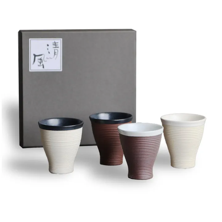伝統を守りながら現代に合わせたモダンなデザインのカップ。各色がセットになって登場しました。 祥風窯曽根洋司氏による、一つ一つ手作業でロクロを使い繊細な線を入れる技術は簡単なものではありません。熟練の技で出来上がる神秘的な作品であり、唯一無二の存在感を醸し出します。 マットな質感と手に持ちやすい形。食卓のアクセントにも。
