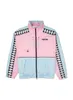 大胆に配したメイバトラックテープとブランドロゴがかっこいいバイカラージャケット。 胸元のドローコードやダブルジップなどデザインと実用性を兼ね備えたアイテム。