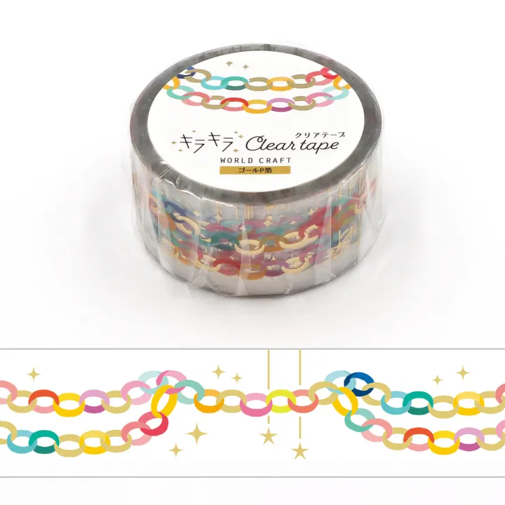 【 キラキラクリアテープ  Paper garland】 ★★キラキラマステのクリアテープ版!  箔押しが魅力の「キラキラマステ」をクリアタイプのテープとして 新たにシリーズ化したキラキラクリアテープ!〜 第1弾 『ゴールド箔』による、12柄展開★★ ゴールド箔がちりばめられた、箔がキラキラと可愛いクリアテープです。 Flagの柄と合わせ使いして、バースデーカードや手紙のデコレーション にもピッタリです♪ ノートやカレンダーの端に貼ったり、ファイルケースや瓶・クリアボトル など、いろんなものを可愛くデコレーションできちゃいます♪ PET素材ならではの【透明度×やわらかさ×粘着】が 紙素材へのデコレーションだけでなく身の回りの 小物デコレーションにも馴染みます♪