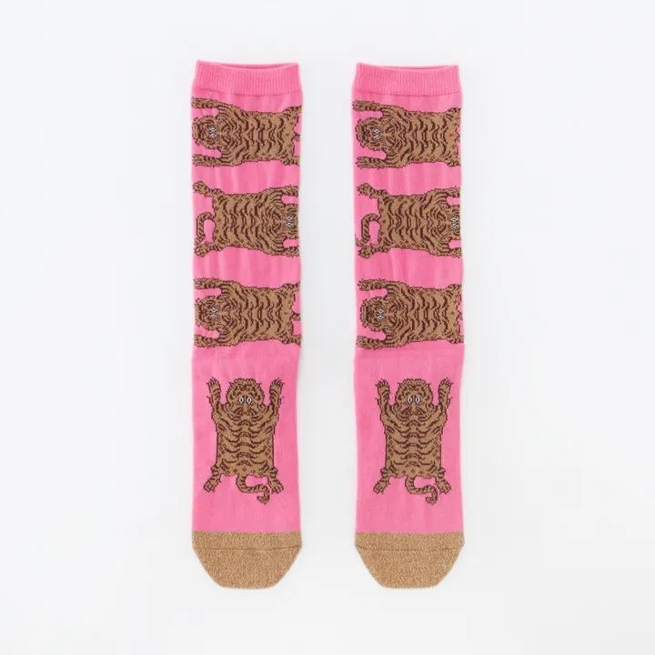 当店では、タイガーシリーズが人気です! 自分自身も一年ほど愛用していますが、デザインもオシャレなうえ ヨレたり伸びたりせず、とにかく生地と縫製がしっかりしているので、 安心してお客様にお勧めできます。 ブランドストーリーや商品説明文も含めてお話しすると、 奈良産の靴下に興味を持っていただけて嬉しく思っております。 今後とも、よろしくお願いします。