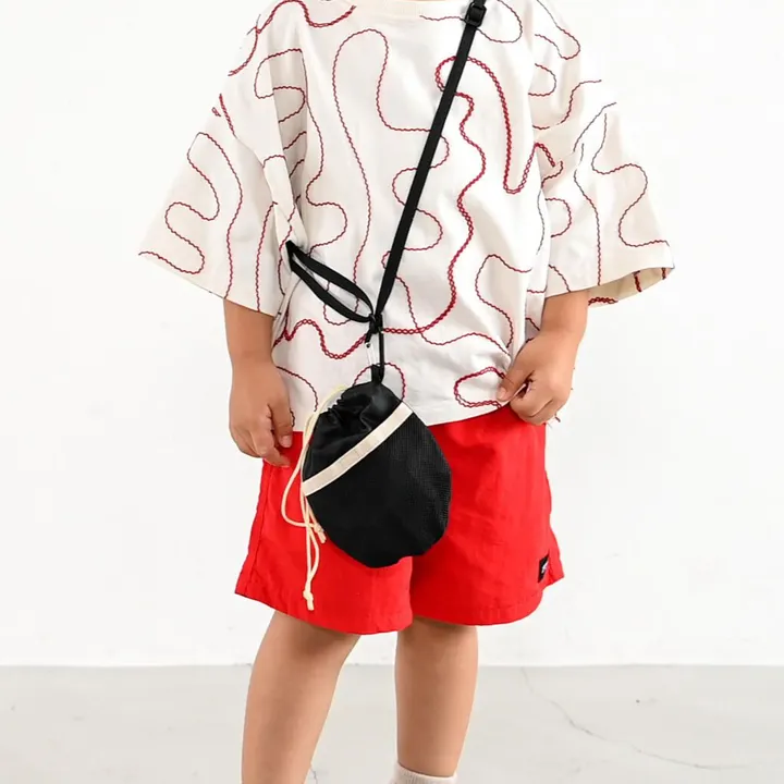 どんぐり、石ころ、葉っぱなど、こどもってなんでも拾いたがりますよね。そんなアレコレをしまう、丸みを帯びた可愛らしいデザインのミニポーチ。大人の小物収納にも最適です! 【こどものアレコレ】 おかし、おもちゃ、みちで見つけた宝もの 【おとなのアレコレ】 イヤホンや鍵、薬など、身の回りの小さなものの収納に ・デザイン 巾着タイプで、ヒモを絞ったときのコロンとした可愛らしい丸い形が特徴。 ・素材 柔らかくて軽量。内側のパイピング縫製(縫い代をくるむ)が、ほつれを防ぎます。 ・カラー展開 気分や服装で選べる4色展開 ・前面メッシュポケット すぐに取り出したいものを収納。ベルクロテープ付き。 ・ストラップ アジャスター付きで調整しやすく、体にフィットしやすい平紐タイプ。 ・カラビナ 本体を外して、バッグに装着したり、バッグ用ポーチとしても。開閉が柔軟なアルミ素材。