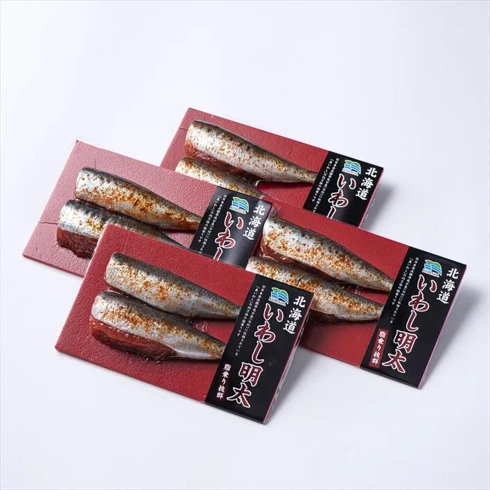 道東で漁獲・水揚げされた脂の乗ったマイワシを使用しています。原魚の脂質は、日本食品標準成分表2020年版(八訂)に収録されている一般的な「真いわし」の2倍以上。 辛味の調味液に一晩じっくり漬け込んだマイワシの腹に、北海道虎杖浜製造の辛子明太子をたっぷり詰め込み唐辛子をトッピング。フライパンで簡単に調理できます。 マイワシの持つEPA、DHAなどの不飽和脂肪酸と、血行を良くする唐辛子のカプサイシンとの絶妙な組合せ。なお包装には魚体のラインが際立ち、見た目も美しいスキンパックを採用。旨み溢れる辛味は、ご飯のおかずは勿論、酒の肴にもぴったり。フライパンで簡単に調理できます。2尾ずつ小分けされた便利な真空パックです。
