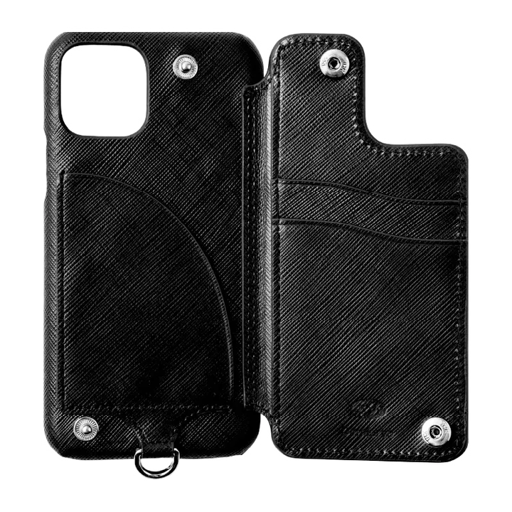 POCHE Saffiano (with button) iPhone11 Saffianoブラック