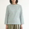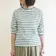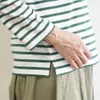 天竺ボーダー・長袖T-オフシロxグリーン-F