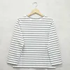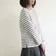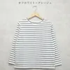 天竺ボーダー・長袖T-オフシロxグレージュ-F