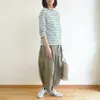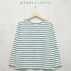 天竺ボーダー・長袖T-オフシロxグリーン-F