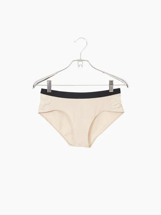 シンプルで洗練された大人な印象のショーツ。 心地よいオーガニックコットン素材がヒップを優しく包み込んでくれます。適度な深さの履き心地、股ぐりの綺麗なライン、安定したフィット感で、デイリーに活躍するショーツです。 カットソー生地と上品なローン生地とのコントラストがポイント。ウエストゴムもオーガニックコットンを使用し、ストレスフリーな肌触り。 SkinAware では「ボタニカルダイ(植物染め)」によってオーガニックコットンの特性を損なわず、様々な色を表現しています。 ボタニカルダイとは、 植物の花、葉、果実などから抽出した染料をタンパク質で生地に吸着させ、植物本来の持つ鮮やかな発色を実現した新しい染色技術。 自然とサイエンスを融合させたハイブリッドな染色方法は、植物が持つエネルギーを感じることができ、リラックスやヒーリング効果も期待されています。 カラーは、様々な薬効に優れているホーリーバジルで染めた「ベージュ」。 ブラトップ WLB016 とセットアップが可能です。