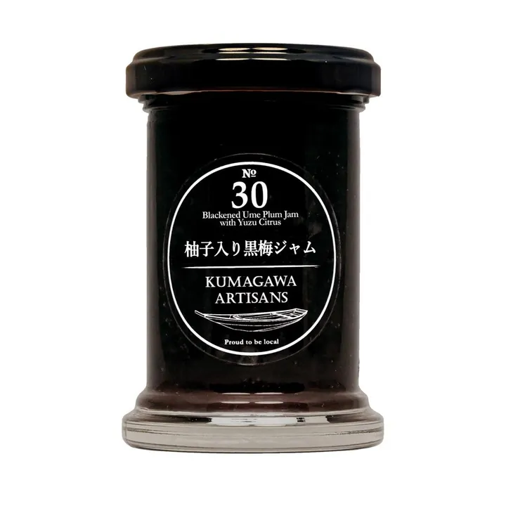 世界で唯一無二の黒梅のジャムが完成しました。驚くほど酸っぱく真っ黒い熟成させた梅のペーストと、和三盆をはじめ4種類の上質の砂糖、梅シロップ、柚子果汁に柚子皮のペーストが織りなすのはパンチが効いていながらも、あと口に爽快感が駆け巡る味わいです。ジャムとしてパンやヨーグルトに合わせたり、お湯に溶かして黒梅柚子茶も滋味深く体を優しく温めます。少量の醤油と合わせたらこれまで味わったことのない調味料となりお野菜の和え物やお肉料理のソースにも活用できます。 黒梅とは? 青梅を裏ごしし、陶器の釜で低温で10日以上間熟成させると味は驚くほど酸っぱい、真っ黒なペーストが出来上がります。日本の民間療法に用いられてきた梅エキスと同じ原理です。熟成することで生成するムメフラールという成分は整腸効果、血流改善などが期待されています。大量の梅からごく少量しか作れず食品への利用は非常にまれですが、生産地だからこそお作りできる、日常的に黒梅の効果をおいしく実感できる製品をお作りしました。