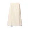 食べすぎた日、 理想の体型に近づいた日、 お腹の命が成長している日々、 変化に対応できるようデザインしました。 長く垂れるリボンが春風になびく頃がこのスカートの旬です。
