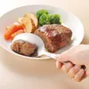 お皿の上で食べやすい大きさにカットし、そのまま取り分けができる幅広のナイフです。大きいものがかみ切れない小さいお子様や、年配の方の口に合わせた大きさに切り分けられます。サービングスプーンとしても使えるので、食卓に1本あると大皿料理の取り分けや、カットに便利です。燕三条の職人がこだわった抜群の切れ味で、ピザも切りやすい。そのまま取り分けできます。ステンレスのサテン仕上げで美しく、傷がついても目立ちません。